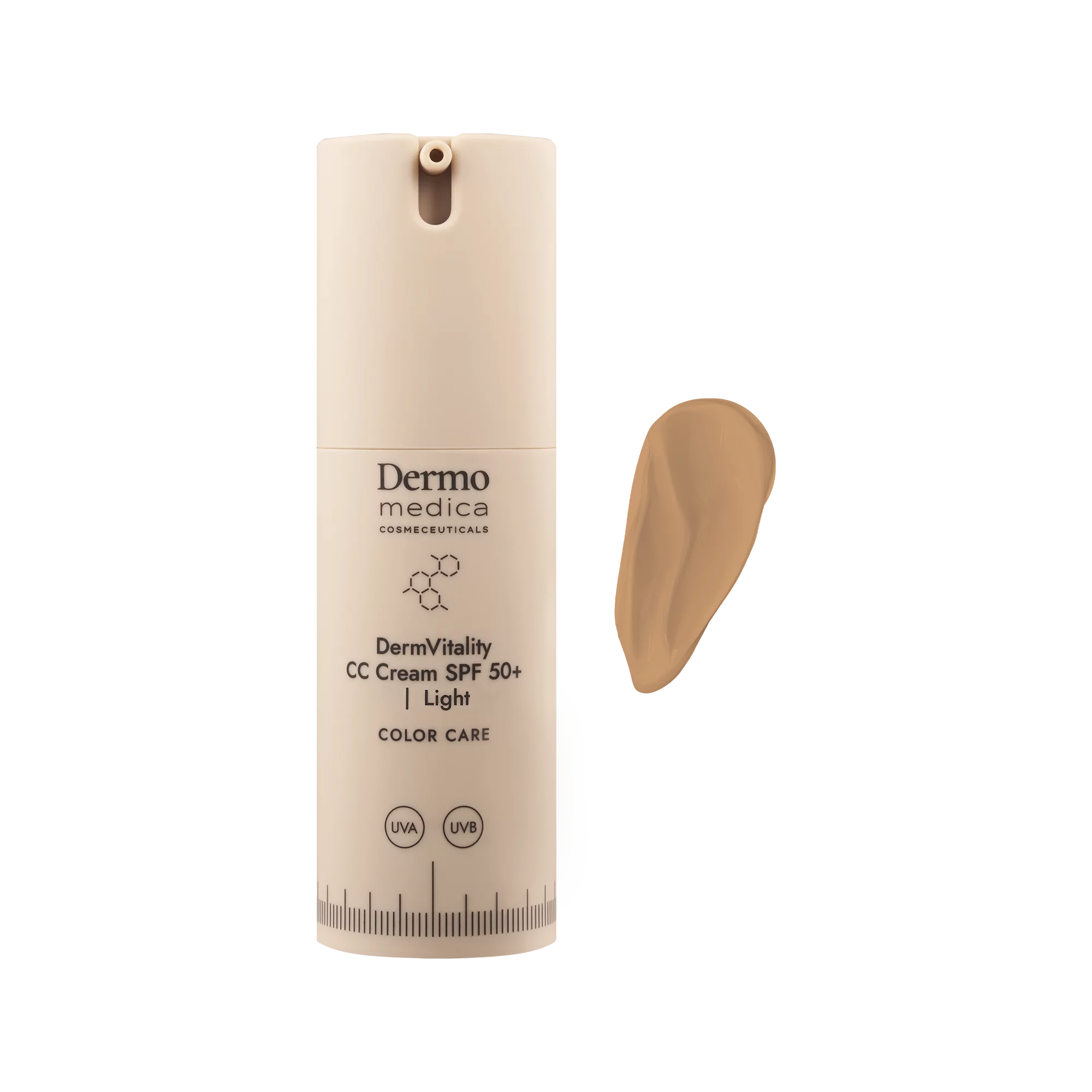 DERMVITALITY CC CREAM SPF 50+ Koloryzujący krem korygujący z bardzo wysoką ochroną UVA/UVB i właściwościami pielęgnacyjnymi – odcień LIGHT